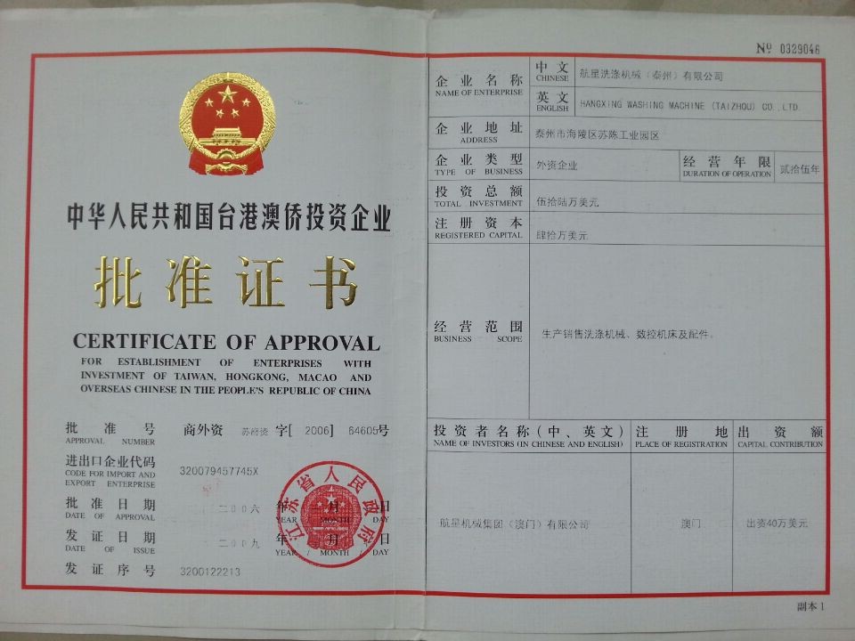 港澳台批准证书